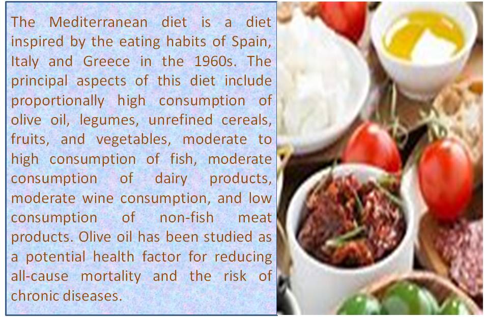 For the purposes of this study, a Mediterranean-style diet was characterised by a variety of fruit and vegetables, legumes and nuts, unrefined or high-fibre grains, fermented dairy products, fish and olive or rapeseed oil.